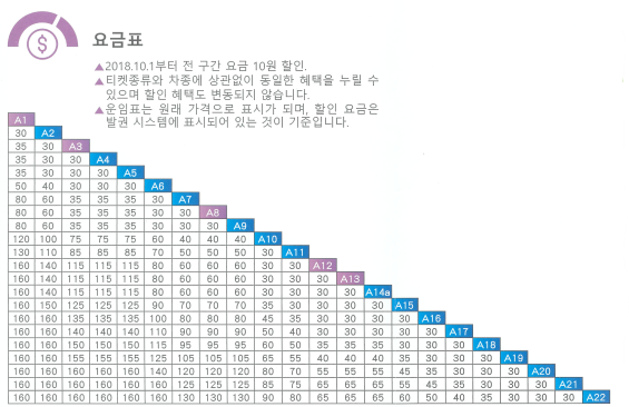 또 다른 예로 뉴 타이베이 산업단지(A3)에서 샨비(A10)까지 가는 요금은 NT$75입니다.