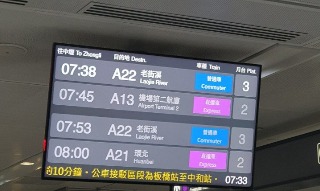 - 대만 공항철도 배차간격: 직행열차, 보통열차 각 15분