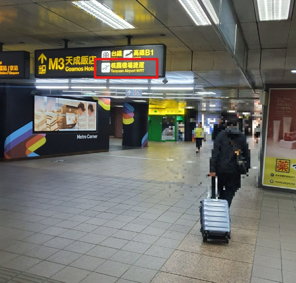 1. 타이베이역에서 공항철도를 타러 가기 위해서는 먼저 M3 출구 방향으로 가시면 됩니다. (곳곳에 [Taoyuan Airport MRT] 표시가 많이 나와 있기 때문에 표지판 잘 보고 따라가시면 됩니다.)