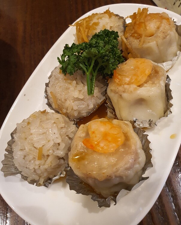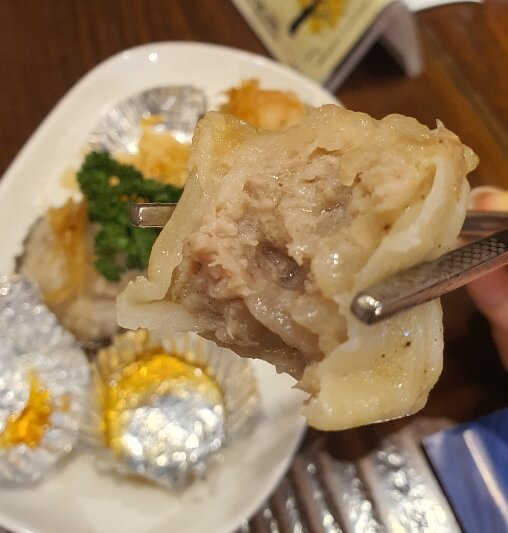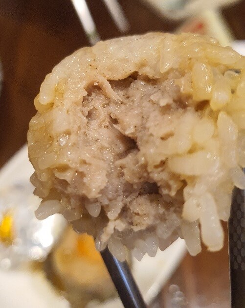 만두피에 돼지고기 속을 넣어 새우를 올린 새우만두와 돼지고기 속을 만두피 대신 찹쌀로 감싸 만든 라이스볼이 같이 나옵니다. 맛은 있긴 한데 좀 느끼한 편입니다.