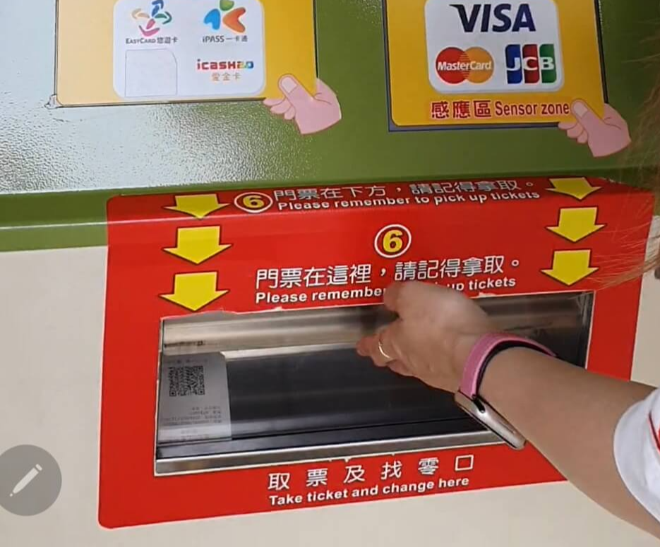 기계 하단에 빨간 박스에서 티켓 수령