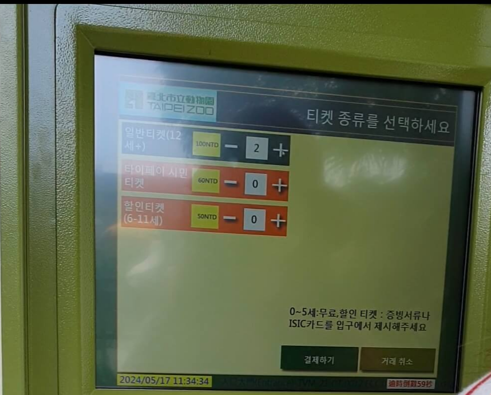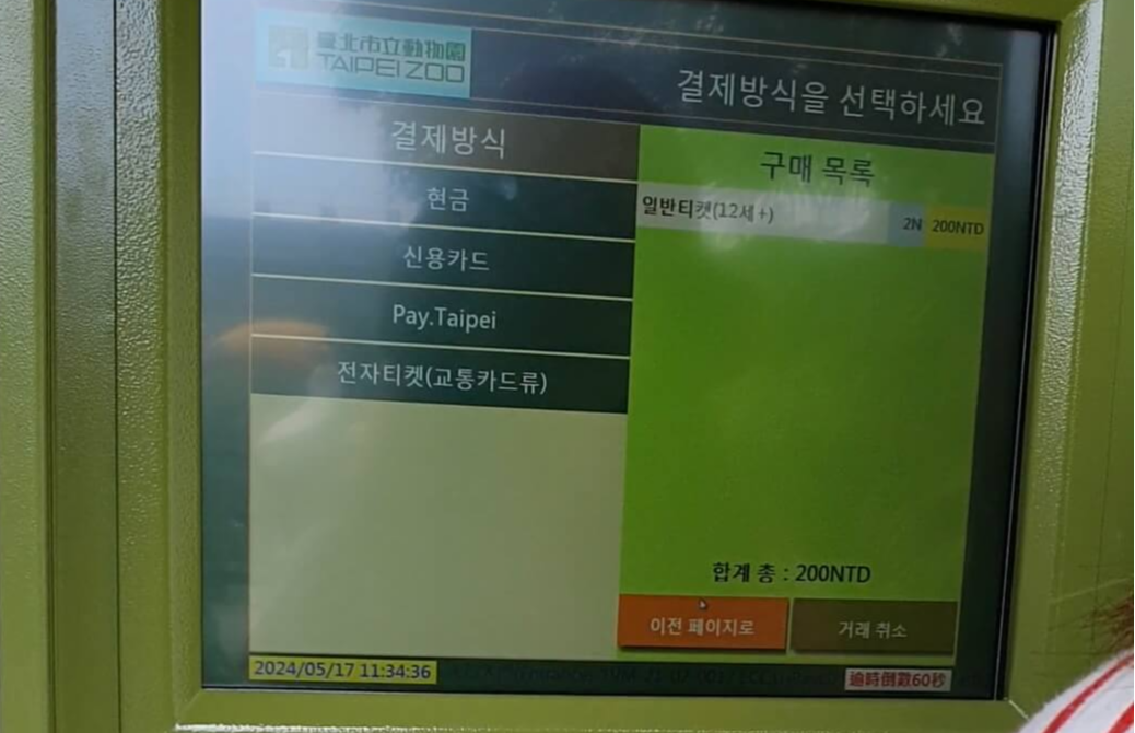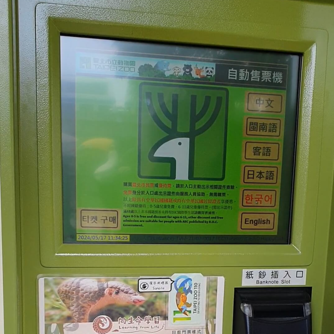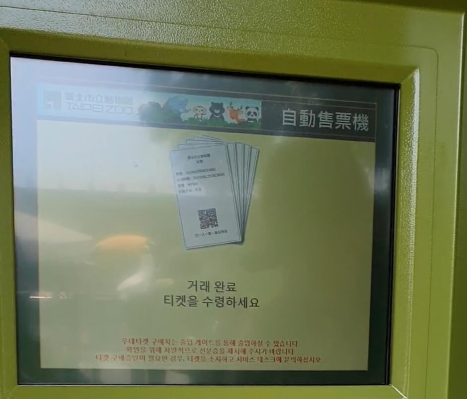 타이베이 동물원 정문 우측에 티켓팅 머신이 있습니다.
