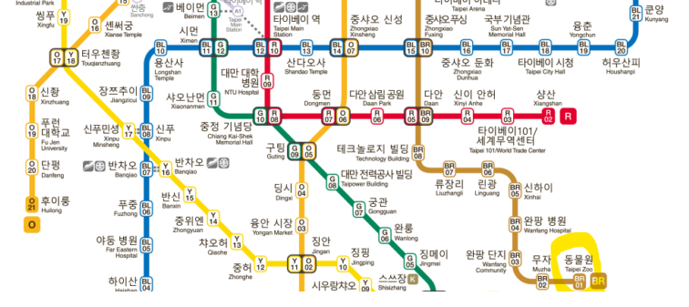 BR(Brown Line) 원후선 종점 동물원(Taipei Zoo)역에서 하차 1번 출구