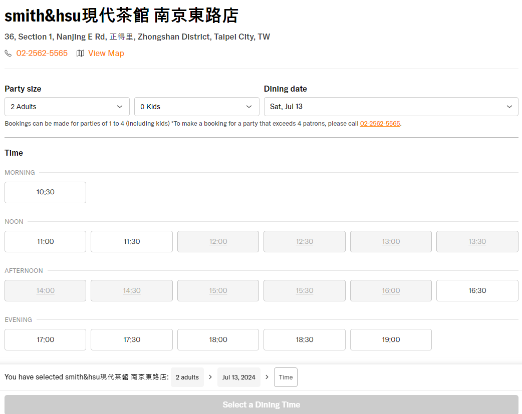 - 주소: No. 36號, Section 1, Nanjing E Rd, Zhongshan District, Taipei City, 대만 104