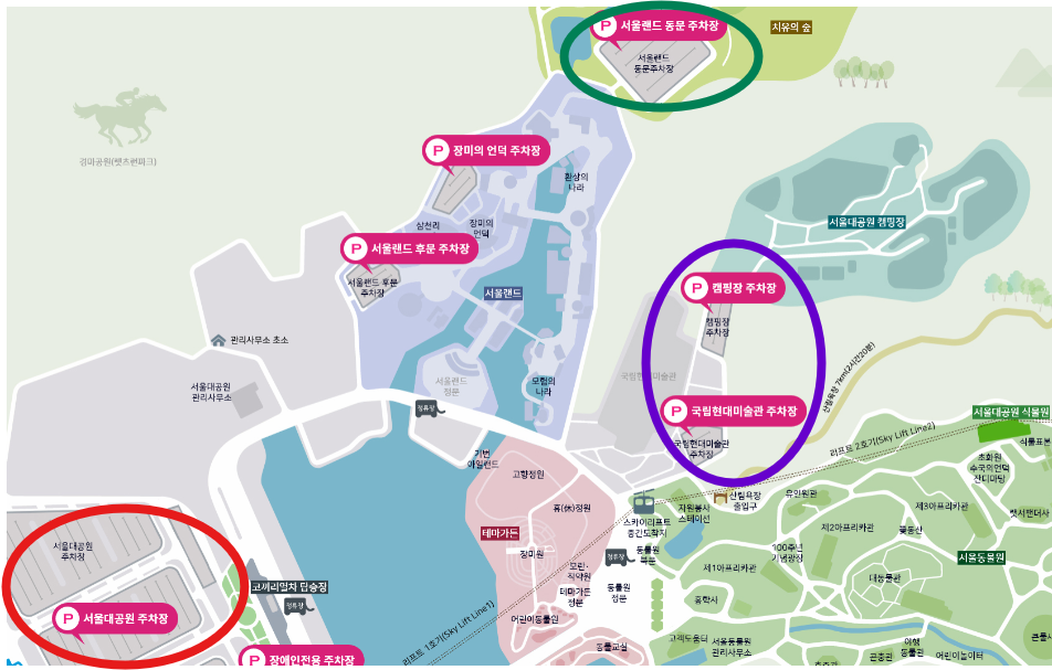 서울대공원/서울랜드/국립현대미술관/ 캠핑장 주차장 안내
