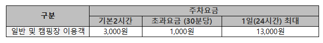 • 대형차량, 캠핑카는 지정한 주차장소만 이용가능하며 (지정장소가 만차인 경우 주차 불가)
