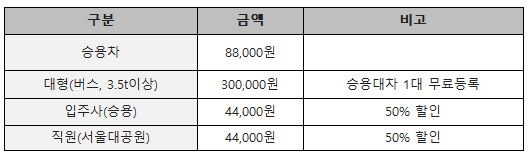 | 국가유공자 차량 | 본인 탑승, 국가유공자증 확인 |