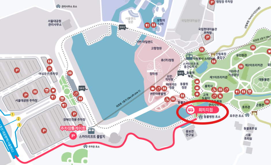 서울대공원 주차장에 주차 시 서울랜드, 서울대공원 동물원까지 코끼리 열차, 리프트 탑승하여 이동하시거나 도보로 걸어 올라가셔야 합니다.